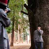 【もっと写真を見る】巨木の袂やベンチで撮影に臨む高杉真宙(4枚)