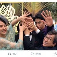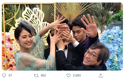 投稿された画像は、11月の投稿と同じ衣装を着た長澤、小日向、東出のショット。そして、手のひらで隠されていた古川が笑顔でカメラに収まっている。