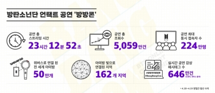18日と19日昼12時からYouTube公式チャンネル‘BANGTANTV’で公開した『BANG BANG CON』は2日間にわたり約24時間で再生回数5059万件を記録し、最大同時接続者数は224万人を超えた。