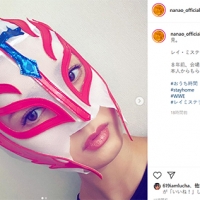 菜々緒が公開したのは、白、ピンク、ブルーで配色されたプロレスの覆面マスクをかぶった自身のショット。WWEのレイ・ミステリオ・ジュニアからもらったもののようで、「ステイホーム」の最中に見つけた様子だ。