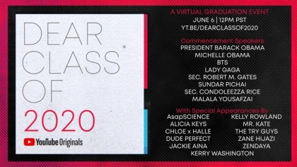 BTSは『Dear Class of 2020』でオバマ前大統領、サンダー・ピチャイ、レディー・ガガなどと一緒に特別演説者として出る。さらにいろんなアーティストと仮想卒業式のアフターパーティーでパフォーマンスも披露する予定だ。