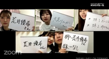 新型コロナウイルス感染防止のため配信環境の制限もある中で、SKE48の各チーム、研究生メンバーがそれぞれ自宅からできる様々な企画のアイディアを出し合い、初めてのチャレンジとなったこの企画。5日午後5時になると、画面にはキャプテンの斉藤真木子が一人でSKE48劇場に登場。今回の企画の内容とスケジュールを説明。タイトルにある“丸一丸(まるいちがん)”とは、2018年に高柳明音が自身の生誕祭でのスピーチで「2019年はみんなで丸一丸となってもう一回戦いに行きたい」と発言した、高柳語からとったものだそう。今まさに“丸一丸”となってこの状況を乗り切ろうと採用した。