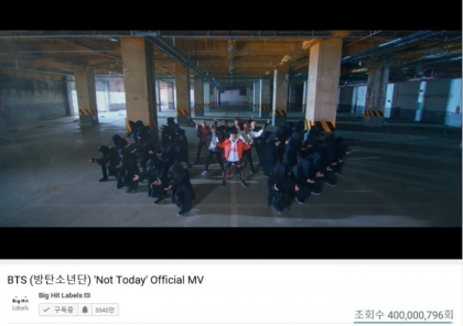 BTSの「Not Today」ミュージックビデオが4億再生を突破した。