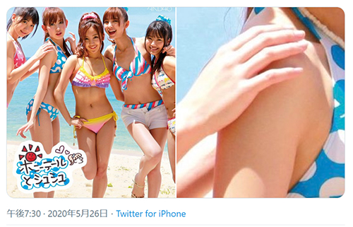 柏木がアップした「ポニーテールとシュシュ」のジャケット。右の写真は“疑惑”の“遠慮していた”という箇所の拡大(Twitterより@Yukiriiiin__K)