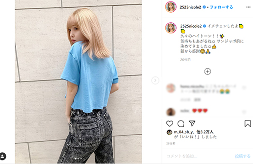 フォトニュース 藤田ニコル、ハイトーンにイメチェン 「すごくいい」「雰囲気が変わった」と反響を呼んでいる藤田ニコルの「ハイトーン」イメチェン(Instagramより@2525nicole2) みんなの意見は?コメントを見る 関連写真・動画 この投稿をInstagramで見る イメチェンしたよ🍋🍋 久々のハイトーン!!✨ 気持ちもあがるね☺︎ サンジャポ前に 染めてきました☺︎👍 朝から感謝🥺🙏 藤田ニコル(@2525nicole2)がシェアした投稿 - 2020年 5月月30日午後7時47分PDT 写真一覧 みんなのコメント コメントを書く(ユーザー登録不要) この写真の記事を読む藤田ニコル「朝4時半から金髪に」ハイトーンにイメチェン「すごくいい」