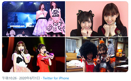 引退まゆゆへの感謝を綴った小嶋陽菜。AKB48時代の2ショット投稿した(Twitterより@kojiharunyan)