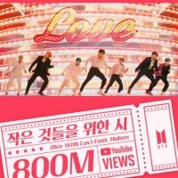 BTSが4日、世界的アーティストHalseyがフィーチャリングで参加し話題となった「Boy With Luv(Feat. Halsey)」のミュージックビデオが8億再生を突破した。