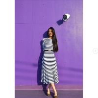 Koki,、黒髪が映える青白ボーダーワンピースで爽やかに「カワイイ」