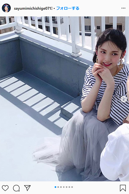 道重さゆみが13日、自身のインスタグラムを更新。透明感のあるボーデートップスが爽やかなマリンコーデなどを披露した。