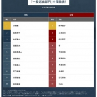 第2位には“なにわ男子”のメンバー高橋恭平と、前回の受賞者・山本美月が次いでいる。なお今回はジェジュンも多数の投票を獲得されたが「現在活動拠点が韓国と日本のどちらになるのか確認ができていない状況」でで、一般投票の条件に満たさないことから中間発表では審査の対象から外れている。