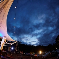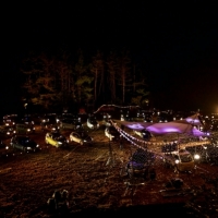 今回は初の試みということで、オフィシャルファンクラブ“四池家”会員限定で、車での来場、群馬県在住に限る設定で、両日35台2日間で70台、約280名が観覧するという規模で行った。会場となった場所は、キャンプ場予定地で、ステージはトラック(ハイラックス)を2台用意し、それぞれの荷台の上に2人が乗る形で行なわれた。
