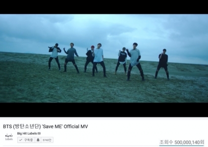 2016年5月発売されたBTSのスペシャルアルバム『花様年華 Young Forever』の収録曲「Save ME」ミュージックビデオは22日午後1時42分ごろYouTube再生回数5億回を超えた。