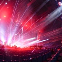 会場には、40台にもおよぶカメラが設置され、通常観客が入っていては配置することができない場所に位置するカメラの絵作りが、画面を見守る観客に、新鮮な興奮を与えたに違いない。照明やミラーボールも客席内にも設置されるなど、今回ならではの演出が随所に施された。