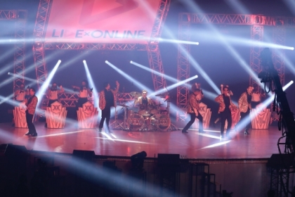 ボーカルのSHOKICHIは、力強いドラムソロを披露。その音楽センスから「Mr.ミュージックマン」のキャッチコピーが付けられた。アジアの開拓者として紹介された「Mr.架け橋」ことリーダーでパフォーマーの橘ケンチは、ステージ中央でスポットライトを浴び、セクシーなソロダンスを踊った。