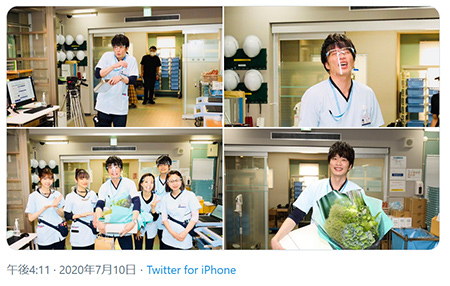 『アンサング・シンデレラ 病院薬剤師の処方箋』の公式ツイッターで掲載した田中圭の誕生日記念ショット。石原さとみや西野七瀬らが祝福(Twitterより@unsung2020)