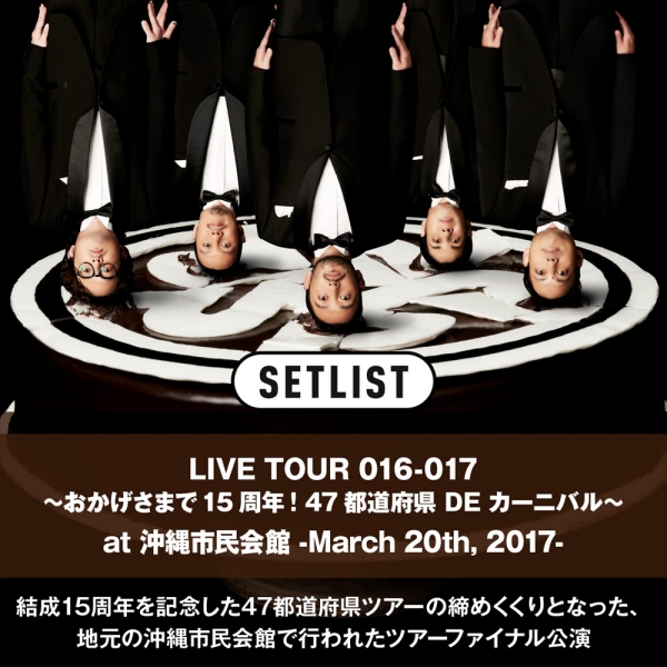 今回公開されるのは、2017年3月20日に沖縄市民会館で開かれた、結成15周年イヤーに行われた全都道府県ツアーの最終公演。