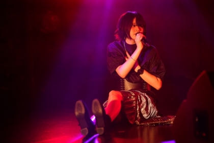 ここでガラリとライブの空気を変えたのは3曲目の「乱反射」。バグベアが手掛ける楽曲に、彼らとニノミヤ本人が共作した歌詞が映える珠玉チューン。音の粒子が瞬くようなエモーショナルな旋律に、陰キャで目立たない自分でも逆転劇へと気持ちを繋いでいくのだ、という想いが滲むナンバーだ。聴く者の背中をただ押すのではなく、一緒に踏み出そうというメッセージを感じさせる。そんな「乱反射」を歌い切ると、ステージから姿を消すニノミヤ。無人のステージ中央にスポットライトが当たると、ニノミヤの声だけが流れ出す。それはポエトリーリーディングによるMCだった。