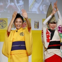 東京・高円寺阿波おどりのパフォーマーから手ほどきを受け、大太鼓を打った桐谷は「テンションが上がって楽しく叩けばいいかなって」、鼓に挑戦した小島「自由にやりました」と笑んだ。