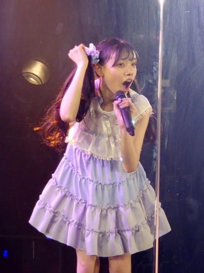 Ange☆Reveの生誕祭では毎回、本人がプロデュースや指定した衣装で登場するのが恒例となっているが、自らも王道のアイドルオタクであることを公言している彼女ならではのフリルの付いた白と水色を基調としたアイドルど真ん中の衣装でひとり登場した。