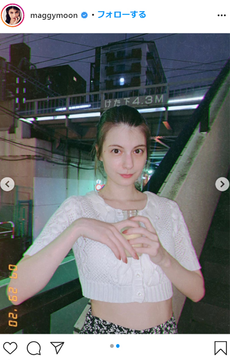 サウナ終わりのマギー。ヘソ出しトップスで色気も(Instagramより@maggymoon)