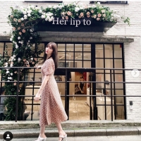 自身がクリエイティブディレクターを務める「Her lip to」のワンピース。ブランドのアイコンでもあるチェリー柄がキュート。パフスリーブが女性らしさを演出、美しいシルエットが完成するエレガントなデザインだ。
