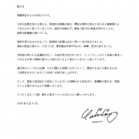 手術後は幸いにも後遺症はなく、今後は体力気力をつけて、じっくりしっかりと治療に専念し、できるだけ早い時期に皆さんの前に立てるよう努めていきたいと思っています。