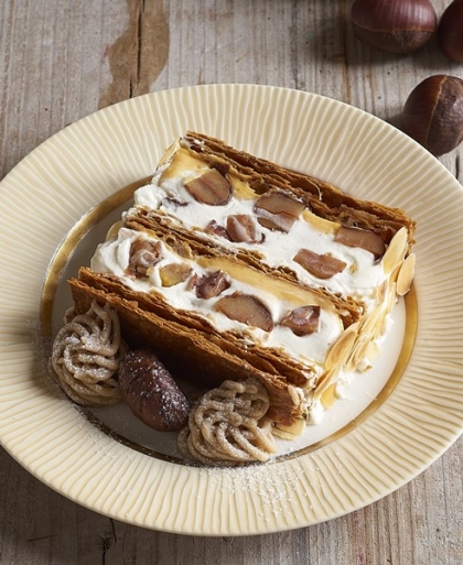 【キハチ 青山本店】サクサクのパイ生地に、栗の渋皮煮と2種類のクリームを重ねて