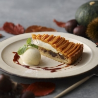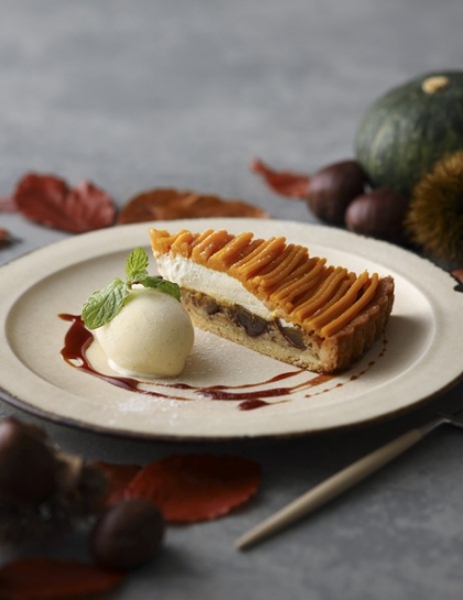 かぼちゃクリームを合わせた、秋ならではのタルト。