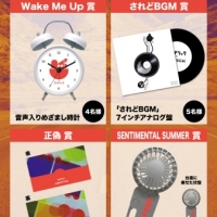 さらに、EP「ASOVIVA」初回プレス封入特典のプレゼントキャンペーンも発表。収録楽曲にちなんだアイテムとして、音声入りめざまし時計やアナログレコード、マスクケース、ミニファンなど遊び心のあるプレゼントが用意されており、封入チラシのシリアルコードから応募ができる。