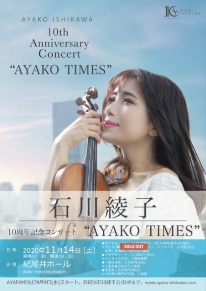 アルバム『AYAKO TIMES』の曲をはじめ、今までの10年間の中でも特に思い入れの深い大切な曲を演奏させていただく予定です。とても久々にコンサートホールで演奏させていただくので、今から待ち遠しくてたまりません。そして、今回のコンサートでは、ストラディバリウスが初披露となりますので、生のストラディバリウスの音色もぜひお楽しみください。