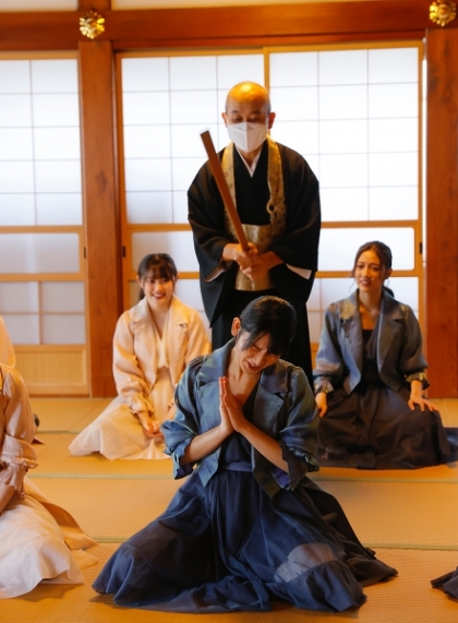 座禅体験後のインタビューでは、小野瑞歩が「普段いろんなことを考えすぎてて、逆にさっきまで何を考えていたか忘れてしまったりするので、今回何も考えない時間を過ごすことができて“こんなに穏やかな気持になれるんだ”って思いました」と充実した表情でコメント。小野田紗栞は「動画を録っていただいてたんですが、みんなどういう顔になっているか見てみたいです」と坐禅中の“半眼”の所作について話を盛り上げた。
