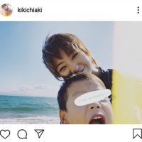 投稿された写真は海辺で笑顔を見せた伊藤と大きく口を開けた息子の2ショット。親子の楽しいひと時を伝える一枚になっている。