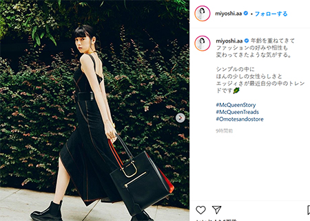 シンプルなワンピースに輝く美肌を披露した三吉彩花(Instagramより@miyoshi.aa)