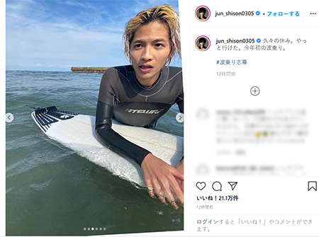 フォトニュース 志尊淳、サーフィン姿に反響 「かっこよすぎる」と反響の志尊淳のサーフィン姿(Instagramより@jun_shison0305) みんなの意見は?コメントを見る 関連写真・動画 この投稿をInstagramで見る 久々の休み。やっと行けた。今年初の波乗り。 #波乗り志尊 志尊淳/jun shison(@jun_shison0305)がシェアした投稿 - 2020年10月月28日午前3時47分PDT 写真一覧 みんなのコメント コメントを書く(ユーザー登録不要) この写真の記事を読む志尊淳「今年初の波乗り」サーフィン姿に反響「かっこよすぎる」