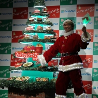 香取は大きなプレゼントを背負ったサンタクロース姿で登場。ファミリーマートおすすめのクリスマス商品を飾り立てた特製“ファミクリツリー”をお披露目した。