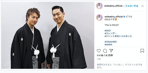 EXILE AKIRAとEXILE TAKAHIRO袴姿のツーショット(Instagramより@exileakira_official)