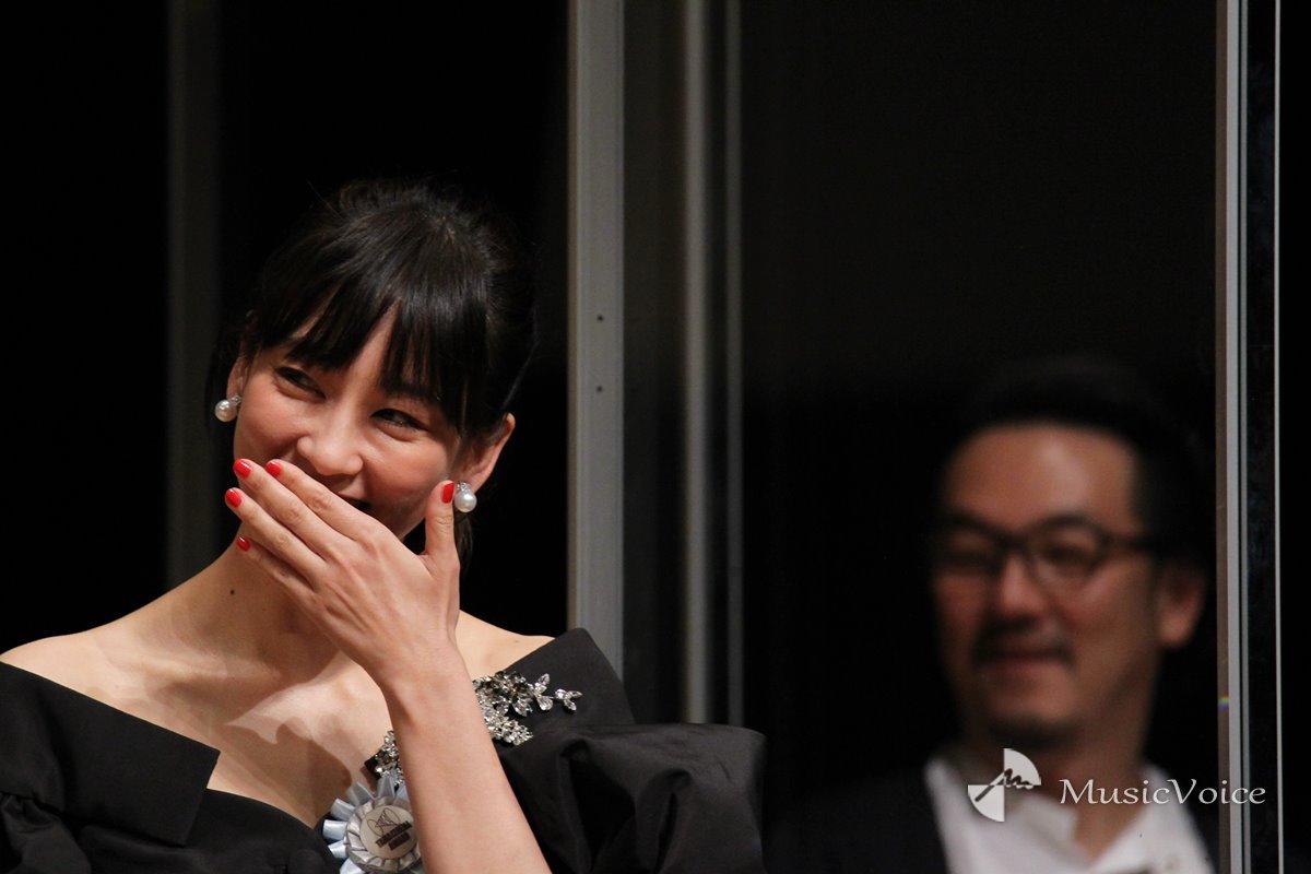 夫を演じた濱田岳のスピーチに笑う水川あさみ