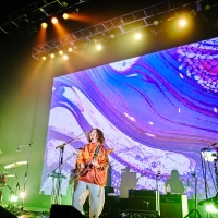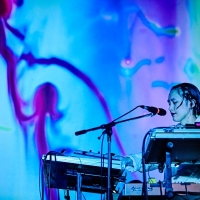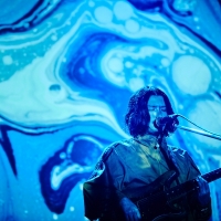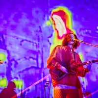 「こんにちは!」「Tempalayです!」というサンプリングのフレーズにディレイがかけられ、スクリーン上で揺れるバンドのロゴと同期するという演出に続いては、以前BTSのRMがSNSでピックアップしたことでも知られる「どうしよう」。中盤は初期の楽曲が続き、アトモスフェリックなシンセから始まるドリームポップ調の「Festival」では、ダブな展開で小原が逆回転ギターを弾き、轟音とサイケな映像の組み合わせが陶酔感を誘う。