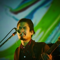 モノクロの映像とともに演奏された「深海より」から、宇宙人の声を模した声がモンドな雰囲気を作り出す「カンガルーは考えている」では、後半のシューゲイズなノイズパートでストロボがたかれ、恍惚とした状態に。さらに、二胡の音色で始まった「大東京万博」は加工が施された東京の夜景をバックに演奏され、そこはまさにオリエンタルな異空間。「らっせーららっせーら」の大合唱から、小原が軽快なステップとともにノイズギターを奏でると、ラストは「そなちね」での絶叫とともに本編が終了。お決まりの「次で最後の曲です」というMCもなく、スパッと潔く終わるのも実に彼ららしい。
