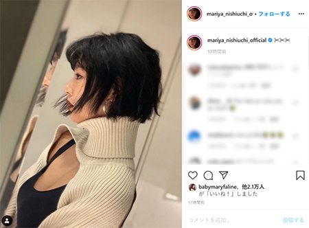 フォトニュース 西内まりや「髪切りました、スッキリ!」 髪を切ったことを報告する西内まりや。「綺麗」「別人見たい」と反響だ(Instagramより@mariya_nishiuchi_official) みんなの意見は?コメントを見る 関連写真・動画 この投稿をInstagramで見る Mariya Nishiuchi 西内まりや(@mariya_nishiuchi_official)がシェアした投稿 写真一覧 みんなのコメント コメントを書く(ユーザー登録不要) この写真の記事を読む西内まりや「髪切りました、スッキリ!」、漂う色気 前の写真を見る →
