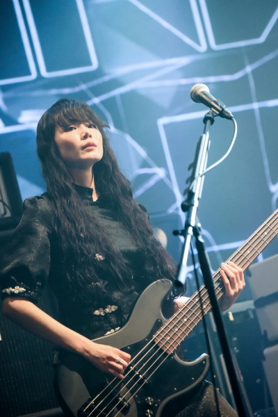続くインスト楽曲「Don’t be long」では、縦横無尽なMISA(Ba.)のベース、AKANE(Dr.)のタイトなドラムに、KANAMIのメロディアスなソロ・ギターで骨太な演奏を見せつける。圧巻の演奏後は、お給仕恒例、小鳩ミクによる“おまじないタイム”で画面の前のオーディエンスとコール&レスポンスを繰り広げたり、海外のオーディエンスへ向け英語で呼びかけたりと、ファンとの交流もかかさない。激しい演奏と親しみやすいキャラクターのギャップもまた、ファンの心を掴んで離さないのだろう。