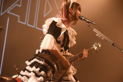 冒頭から攻め続けたセットリストの中、一変してステージは暗転。儚げなイントロが印象的な「start over」の演奏が始まると、曲に合わせて、ロマンティックな映像が背後に映し出される。BAND-MAIDからの少し早めのクリスマス・プレゼントだ。「Daydreaming」ではSAIKIが力強くしっとりと歌い始めると、小鳩ミク(Gt.&Vo.)の歌も優しく絡み、ツインボーカルで伸びやかに歌い上げる。SAIKIと小鳩ミクが互いの個性と歌声を引き立て合う、ボーカルの幅広さもBAND-MAIDの魅力のひとつだ。