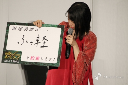 改めて、「このご時世に無事公開が出来てホッとしています」と挨拶。もともと原作のファンで実写化を聞いた時に驚くとともに不安を感じたといい「エマを演じるなかで(共演の)子供たちの力、皆さんの力を感じて、諦めなければ壁は乗り越え何でもできると勇気を頂きました」と感謝。