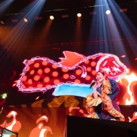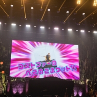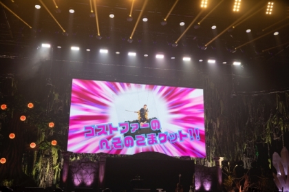 「日本武道館へようこそ!」と元気いっぱいの言葉を投げかけ、2曲目の「顔ドン」では「早速トロッコに乗っちゃおうかな」と意気揚々とステージ袖に向かった眉村。しかしまさかの眉村ママがトロッコに乗ってアリーナをぐるっと一周するというサプライズで楽しませた。続いての「ナックルセンス」では、空中に浮かぶワイヤーアクションを決める眉村。ゴストファーという魚のモンスターを剣で退治し、一つ目のアイテムである“ヘソのごま”をゲット。