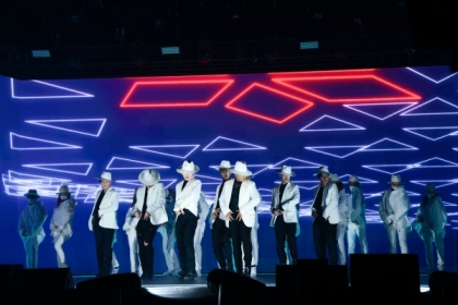 3曲目「O.R.I.O.N.」はライブでも盛り上がる定番曲だが、今回はスペシャルバージョンのテクノアレンジでいつも以上にキラキラ度がアップ。続く「HAPPY」では、パフォーマーのソロダンスでクールな魅せ場を作りながらも、一方でメンバー同士のノリの掛け合いを見せるギャップある演出に。ELLYが山下健二郎の肩を抱き寄せるシーンにはコメント欄が湧いていた。