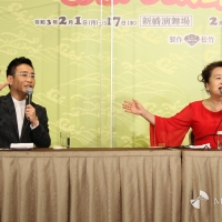 渡辺えり、八嶋智人が7日、都内のホテルで、W主演舞台『喜劇 お染与太郎珍道中』(2月1日~17日・新橋演舞場、2月21日~27日・南座)の制作発表会見に臨んだ。