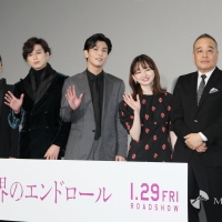 岩田剛典、新田真剣佑、山田杏奈、中村アン、佐藤祐市監督が7日、都内で行われた映画『名も無き世界のエンドロール』(1月29日公開)完成報告会見に出席した。