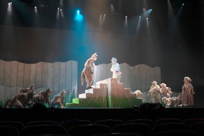 そして、オオカミのリーダー・ギロ役に大森博史、おばさんヤギ役は初演に引き続き平田敦子が務め、日本の演劇界に欠かすことの出来ない二人のベテランが脇を固める。