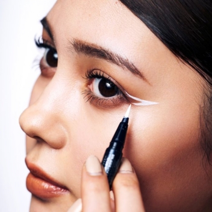 自然への賛美と地球への感謝を込めて、今季はアースカラーや大地や植物の生命力を感じる素材、自分自身を解放してくれるプリントやカラーが気分です。特にオススメなのは「地層」柄。カジュアルだけではなく、モードっぽく着こなせるのがポイント。柄にパンチがあるので、全体のテンションがバラバラにならないようにトーンを揃えましょう。このトレンドには、いつもと少し印象を変えられる「白引きメイク」がオススメ。アイメイクはマットなベージュブラウンで、大人っぽいベースを作ります。目のキワに引くいつものアイラインではなく、二重の方は二重の線に沿って、一重の方は目尻にグラフィカルに引くのが、オシャレに仕上がるポイント!