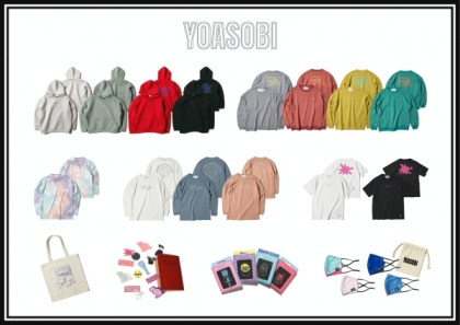 おなじみのキービジュアルやこれまでにリリースしてきた各楽曲の世界観を落とし込んだアパレルグッズに加え、ミュージックビデオで使用されているモチーフをかたどったスマホリングやステッカーなど、YOASOBIの世界観をより身近に感じられる、身に付けたくなるグッズが多数ラインナップされている。販売サイトではAyaseやikuraがグッズを着用している写真も公開されている。